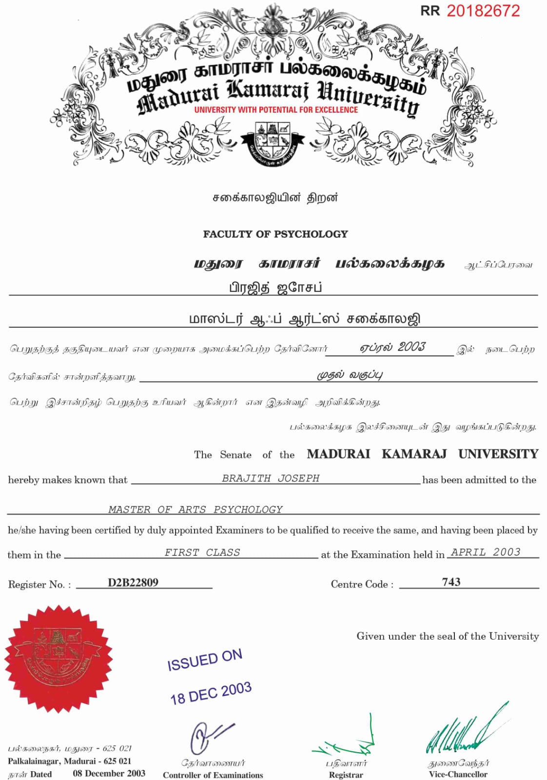 Registration No: -