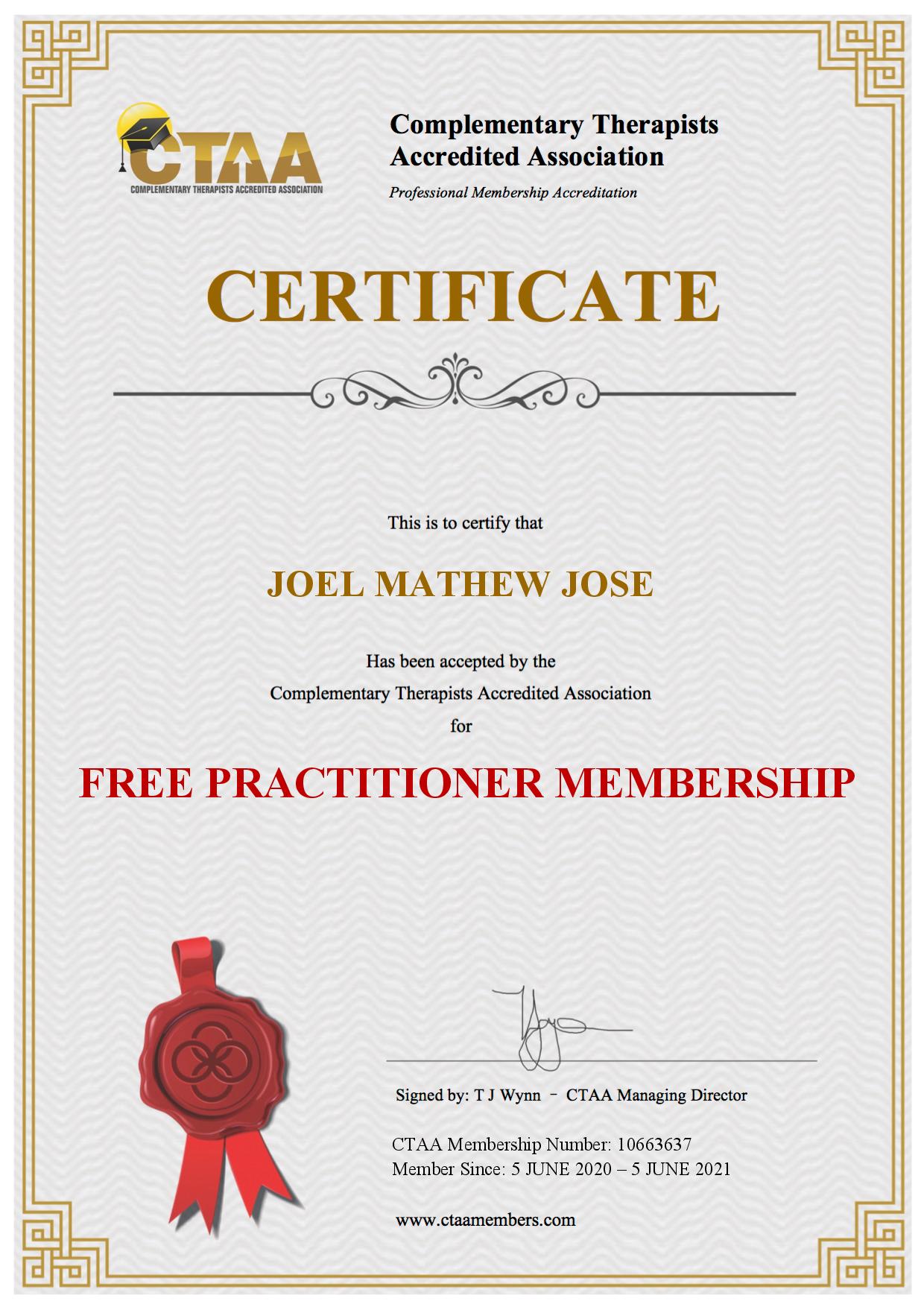 - free practitioner member with CTAA Complementary Therapists Accredited Association (CTAA